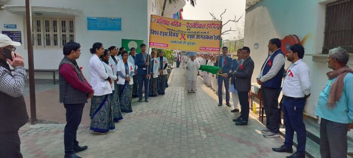विश्व एड्स दिवस के अवसर पर एड्स बिमारी के रोकथाम के लिए नर्सिंग कालेज चेयरमैन डॉ. संजय कुमार