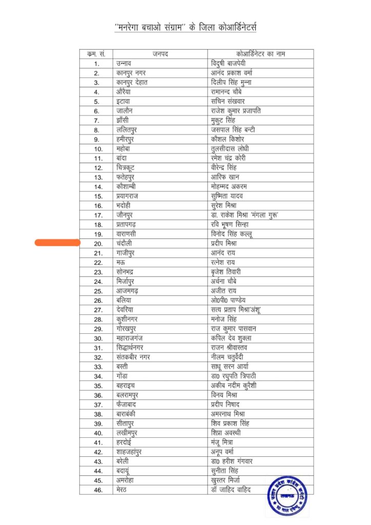 दरअसल कांग्रेस वर्किंग कमेटी( CWC ) की बैठक क़े दौरान राष्ट्रीय अध्यक्ष मल्लिकार्जुन खड़गे व नेता प्रतिपक्ष राहुल गाँधी एवं प्रियंका गाँधी सहित उपस्थित सभी नेताओं ने मनरेगा को बचाने का संकल्प लिया. जिसके बाद देश क़े सभी जनपदों में “मनरेगा बचाओ संग्राम ” को युद्ध स्तर पर गाँव – गाँव तक पहुंचाने क़े लिए को – ऑर्डिनेटर की नियुक्ति किया गया.