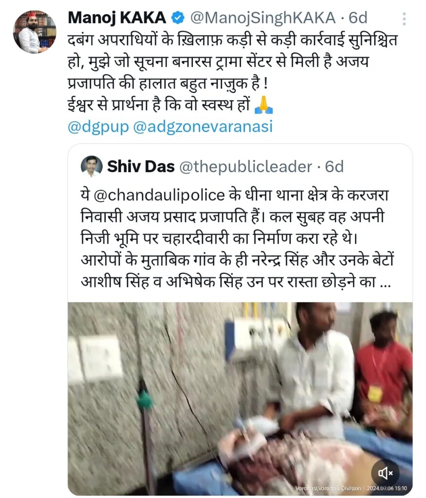 गौरतलब है कि सपा प्रवक्ता मनोज सिंह ‘काका’ ने घटना के बाद सोमवार को सोशल मीडिया ‘एक्स’ पर अजय प्रसाद प्रजापति की हत्या का मामला प्रमुखता से उठाया था और दबंग अपराधियों के खिलाफ कड़ी से कड़ी कार्रवाई की मांग की थी. परिजनों से मुलाकात के बाद उन्होंने बच्चों के भरण पोषण के लिए पार्टी की तरफ मदद का आश्वासन दिया. सरकार बनने पर परिवार को नौकरी देने की बात कही.