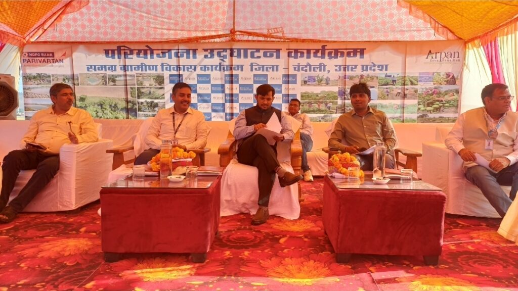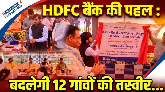 The News Point (चंदौली) :- एचडीएफसी बैंक ने अपनी कॉर्पोरेट सामाजिक उत्तरदायित्व (सीएसआर) पहल परिवर्तन के अंतर्गत समेकित ग्रामीण विकास कार्यक्रम का शुभारंभ किया. यह कार्यक्रम अर्पण सेवा संस्थान के सहयोग से आकांक्षी जनपद चंदौली के विकासखंड चकिया के 12 चयनित गांवों में संचालित किया जाएगा. कार्यक्रम का उद्घाटन जिलाधिकारी चंद्रमोहन गर्ग और मुख्य विकास अधिकारी आर जगत साई ने दीप प्रज्वलित कर किया.